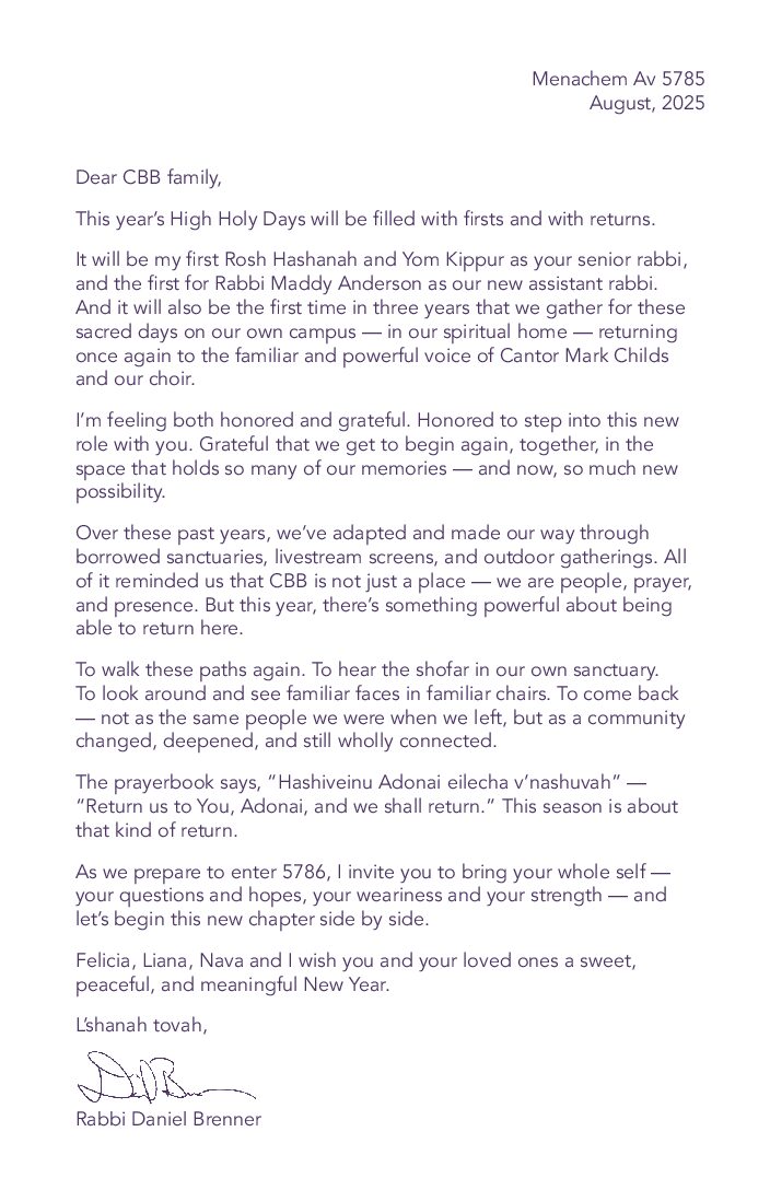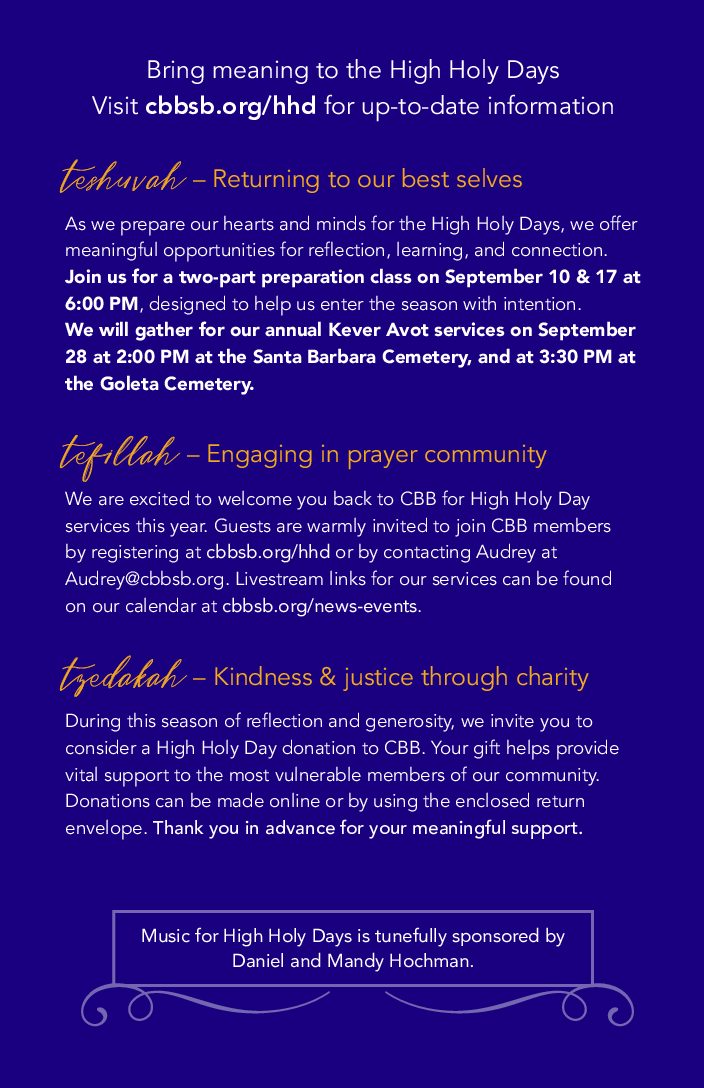 Thank you for joining us for High Holy Days 2025 at CBB!